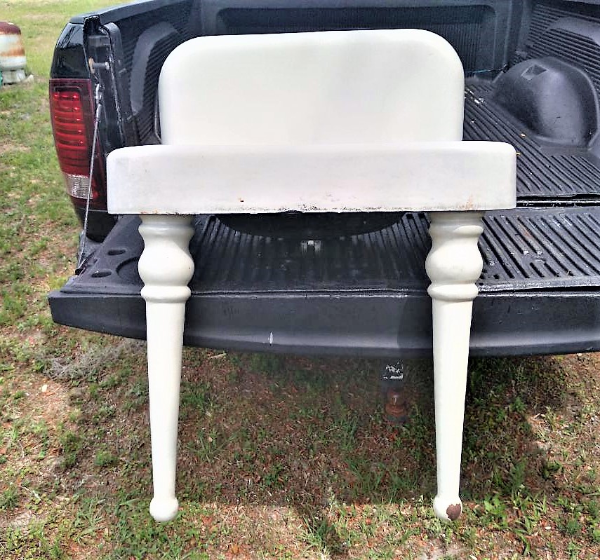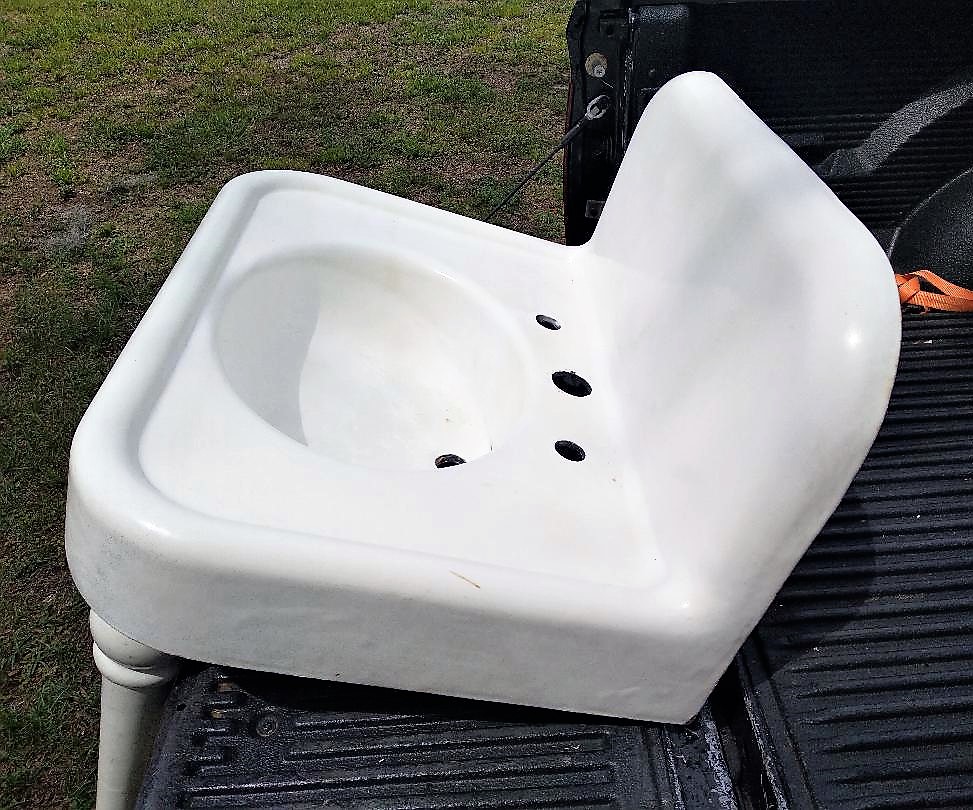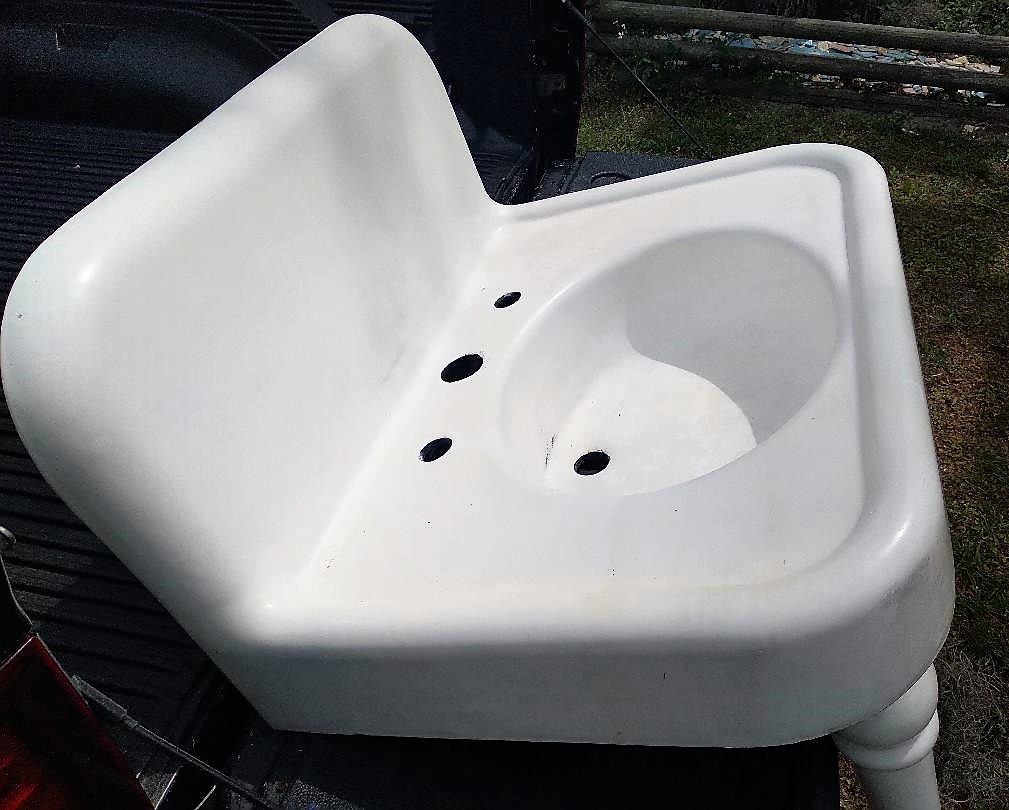 Heavy cast iron oversize single bowl farmhouse style wall mounted sink in better than average condition! Includes the original cast iron front legs!