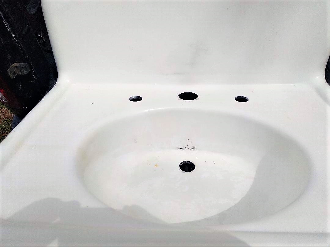 - The legs sit inside 4.5″ making the sink the approximate 30″ tall lavatory hieght.