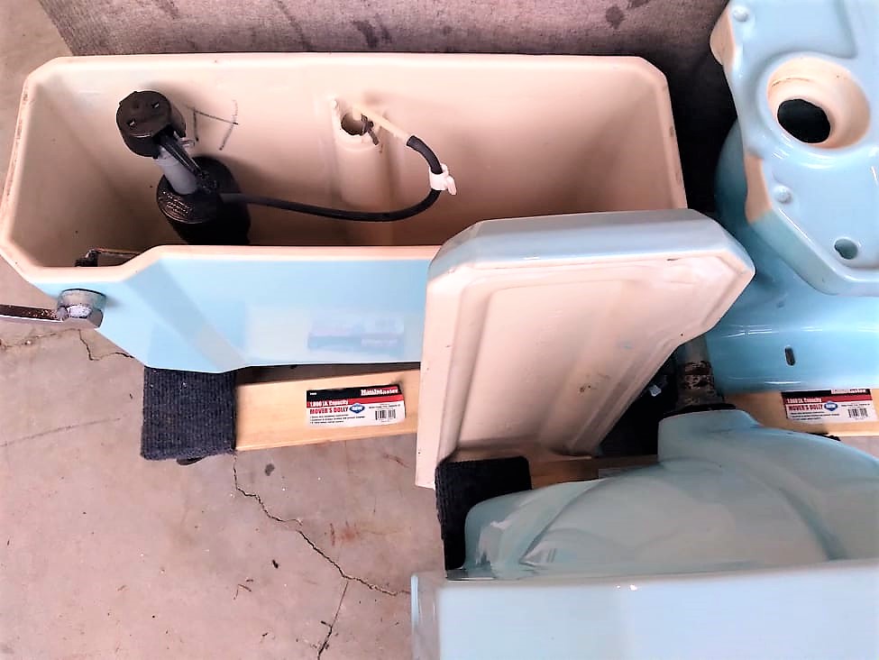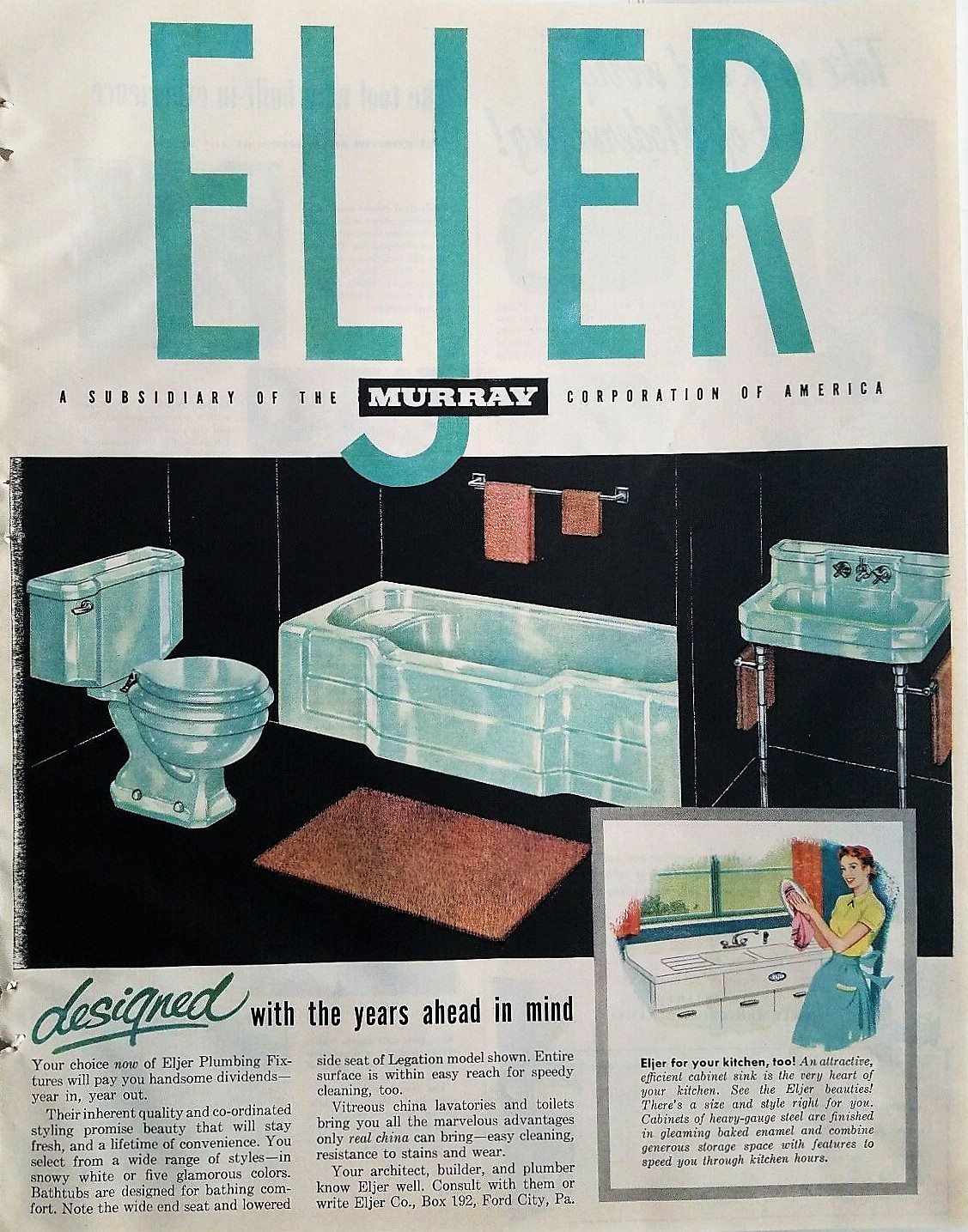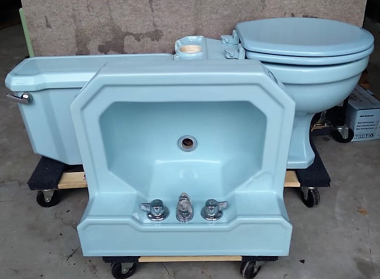 Outstanding matching set of 1947 ELJER pastel blue bathroom fixtures!