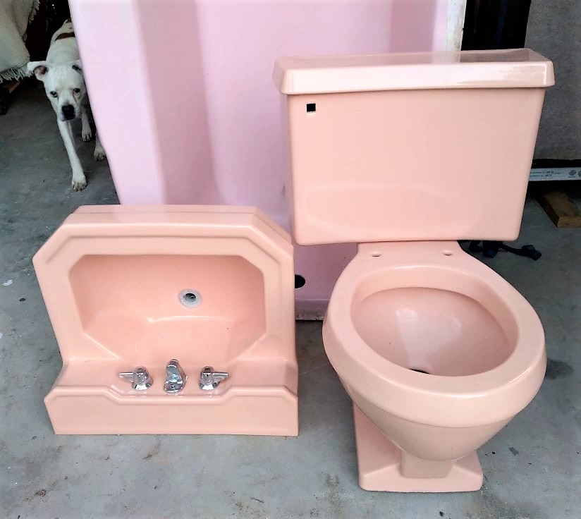 These were found in an old plumbing supply house and the original lid was not in the same vicinity, but we have a perfect used tank lid to go with it! Also includes a new float ball and 90 degree flush pipe! (not shown)