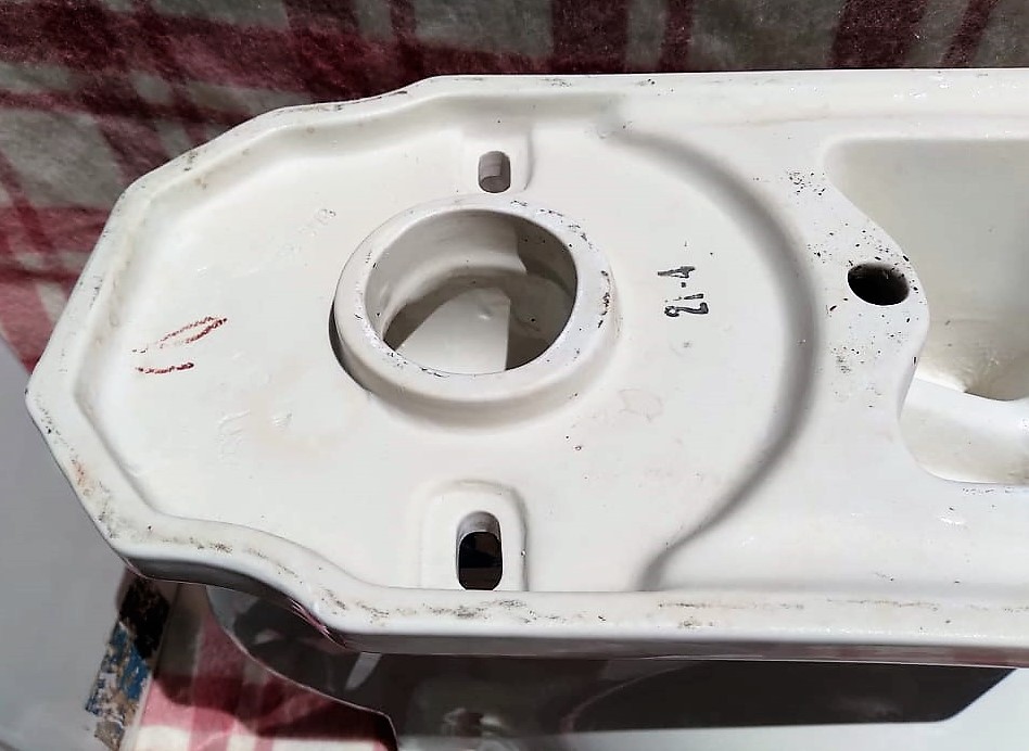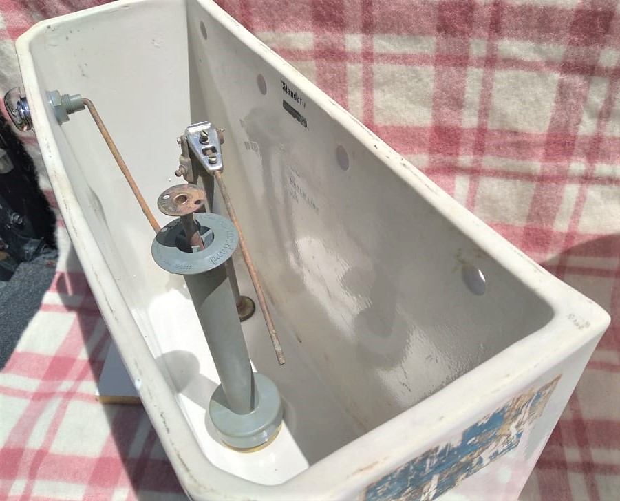 These were found in an old plumbing supply house and the original lid was not in the same vicinity, but we have a perfect used tank lid to go with it! Also includes a new float ball and 90 degree flush pipe! (not shown)