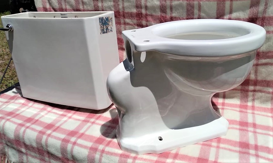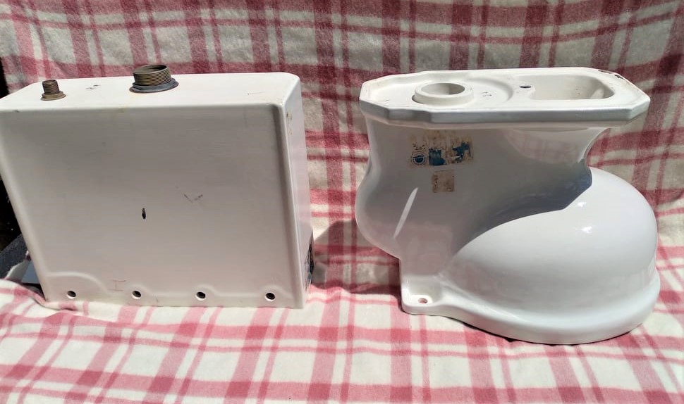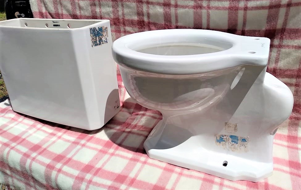 New Old Stock Low Tank-Wall Mounted Tank Rear Spud Toilet that has never seen water!