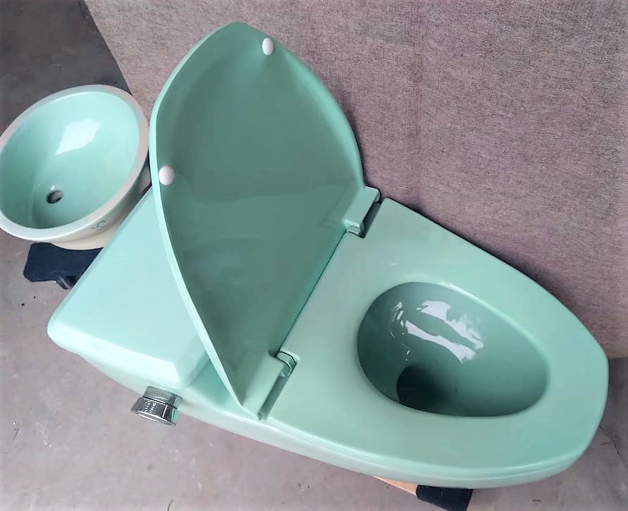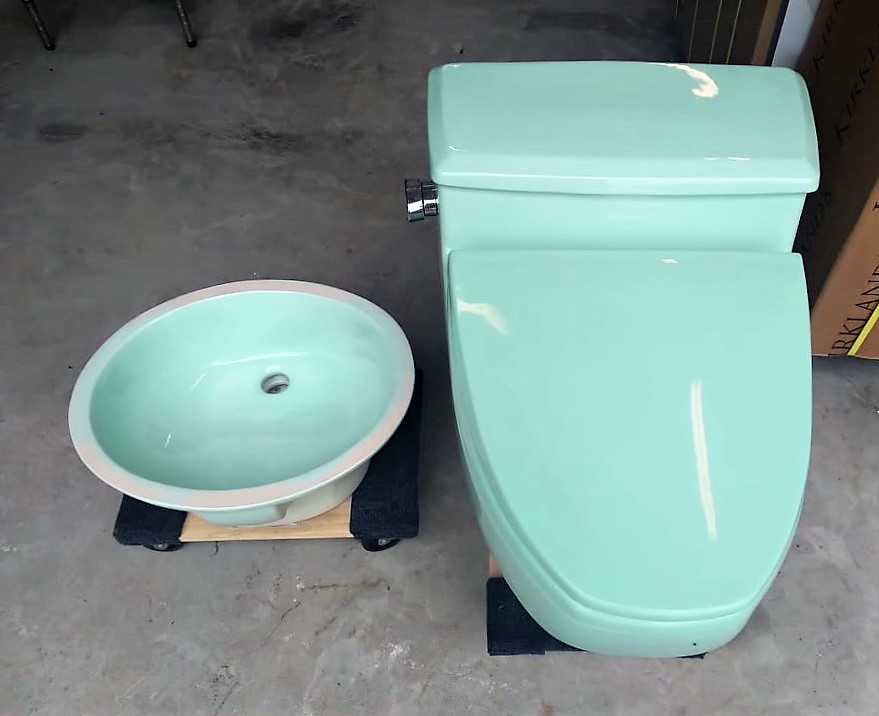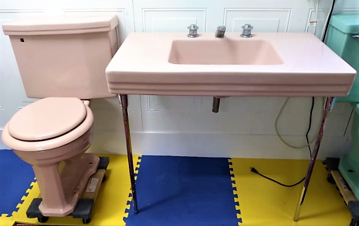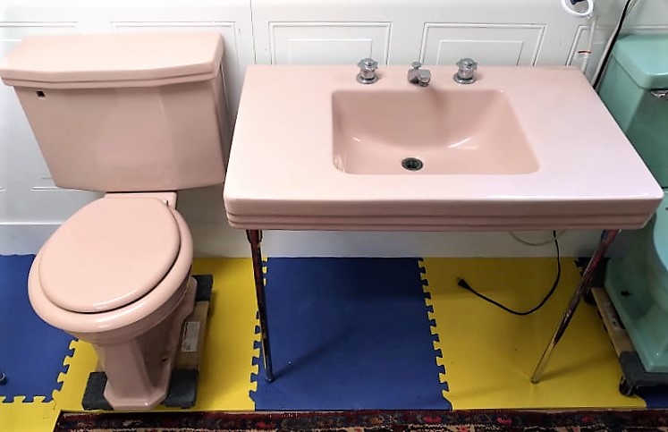(Also shown are matching toilet and console sink in the same beautiful Corallin Pink that are also available separately)