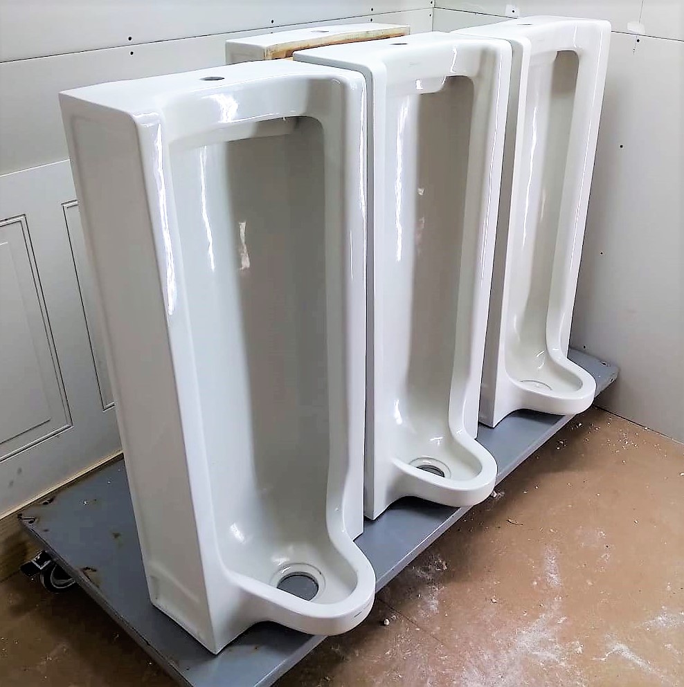 As you can see by the pictures, these are three matching urinals removed at the same time. (A photo shows them right after removal)