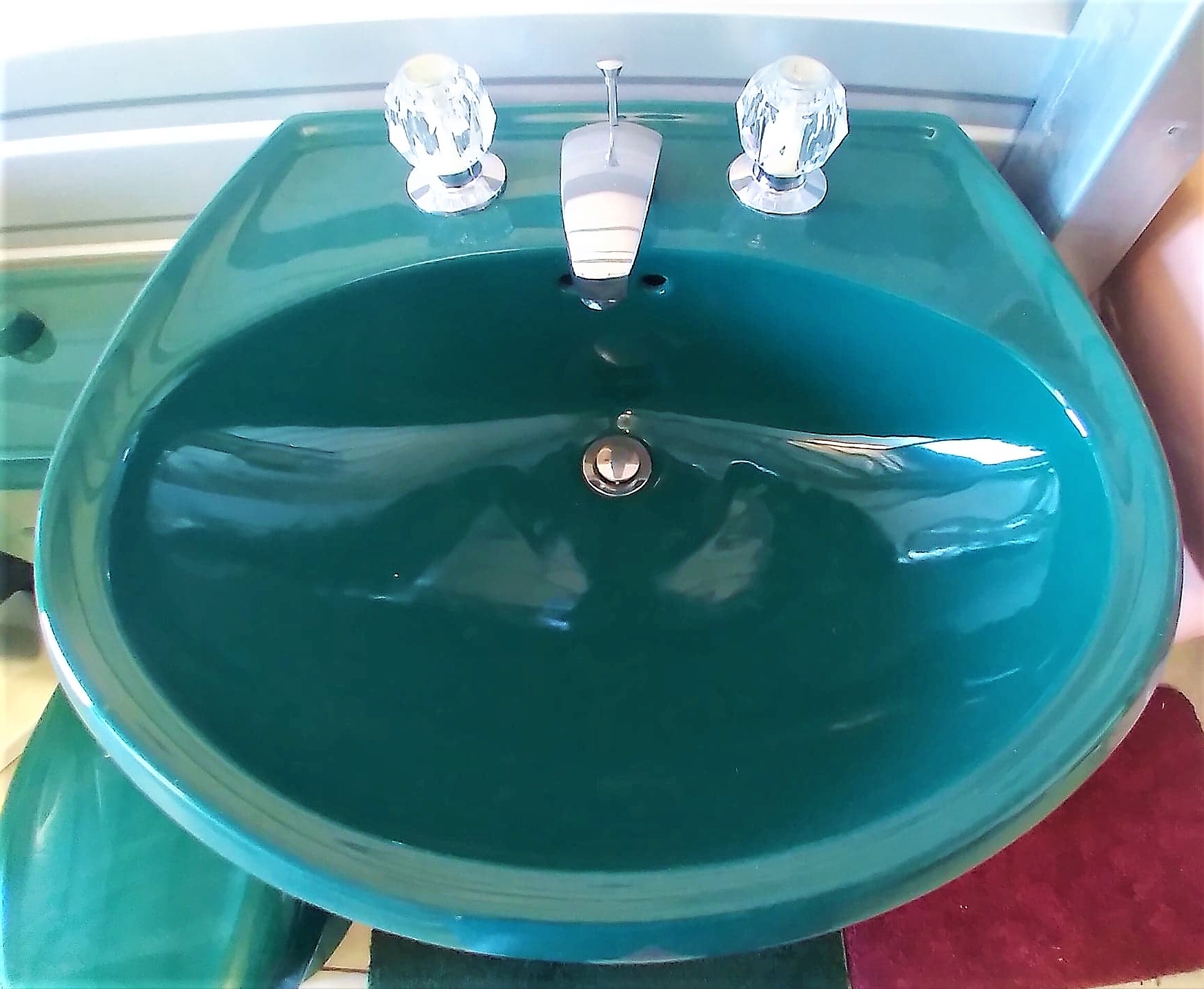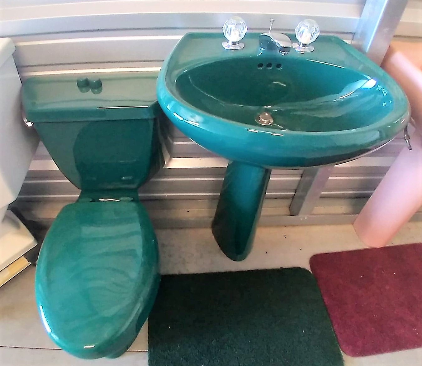 Beautiful pair of fixtures which include the faucet, matching toilet seat and bolt covers! Complete!